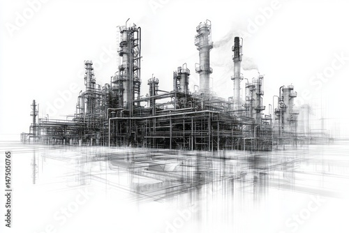 © Basileus, Obraz premium Detailed industrial complex drawing overlay.