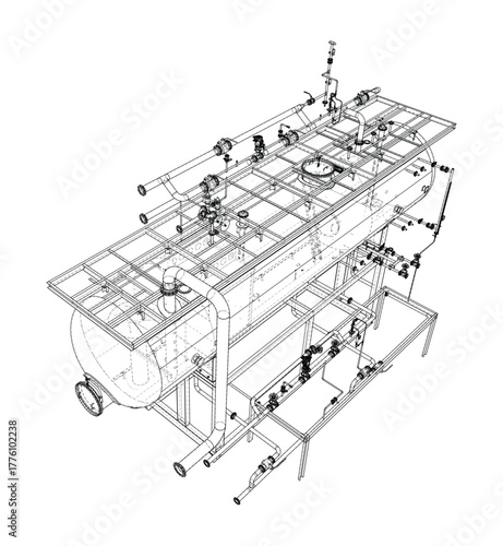 © cherezoff, Obraz premium Detailed Industrial Tank Blueprint. Vector