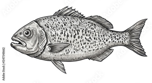 Fototapeta premium Detailed Ink and Pencil Engraving of a Dorado Fish