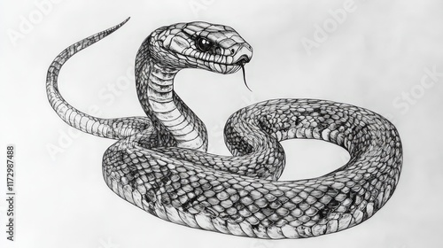 Fototapeta premium Detailed Ink Drawing Of A Coiled Snake