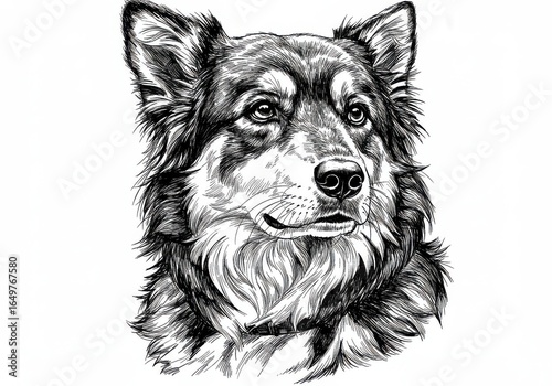 Fototapeta premium Detailed ink drawing of a dog with fluffy fur and expressive eyes on a plain...