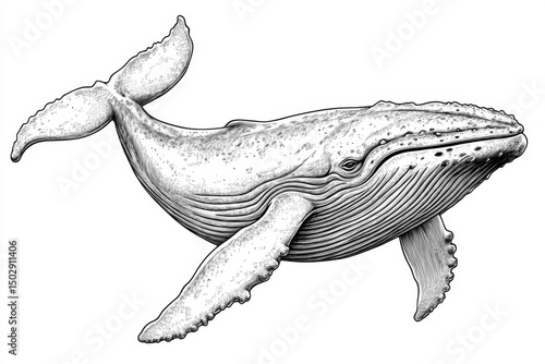 © Dian, Fototapeta premium Detailed Ink Drawing of a Humpback Whale Oceanic Mammal Illustration