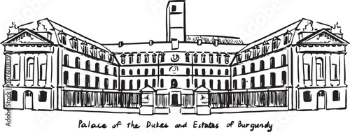 Fototapeta premium Detailed ink sketch of the Palace of the Dukes and Estates of Burgundy in...
