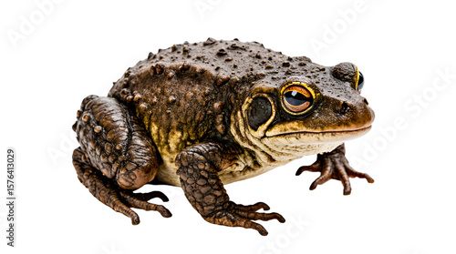 © Art Magic, Fototapeta premium Detailed Isolated Image of a Brown Frog on a White Background, Providing a Close-Up View