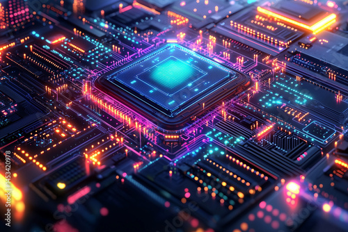 © Ryan Jungjeok, Obraz premium Detailed Isometric Schematic of Artificial Intelligence Data Flow and Core Logic