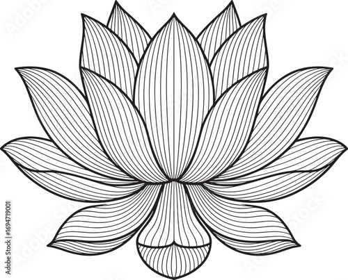 Fototapeta premium Detailed Line Art Depiction of a Lotus Flower an Elegant Floral Design with Intricate Petal Patterns and a Clean Black and White Aesthetic