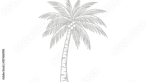 © kenken radisty, Obraz premium Detailed Line Art Illustration of a Slender Palm Tree with Coconuts