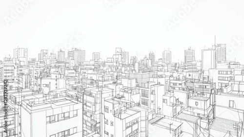 © Tuachan, Fototapeta premium Detailed Line Art Illustration of Urban Cityscape Background