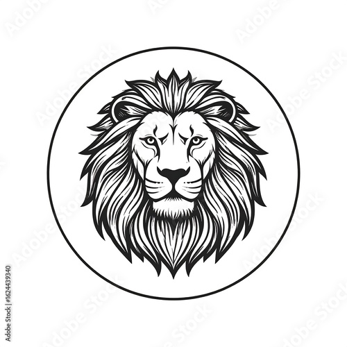 © Yoga, Fototapeta premium Detailed line art lion's head, encircled