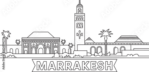 Fototapeta premium Detailed Line Art of Marrakech Skyline Silhouette Vector Illustration for...