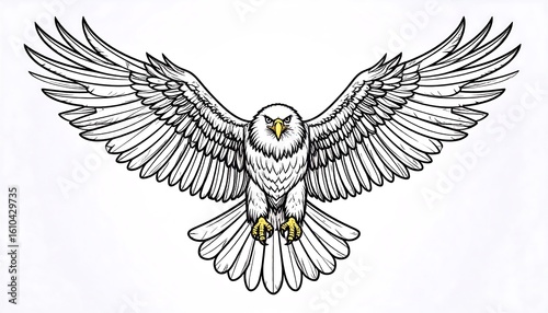 © Kay, Obraz premium Detailed line drawing of a bald eagle in flight, wings outstretched