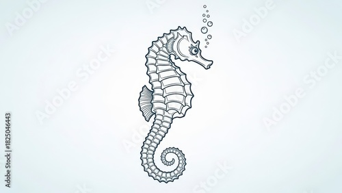 © sangNaga., Fototapeta premium Detailed Line Drawing of a Seahorse with Bubbles.