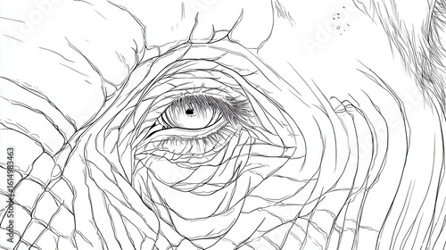© Ariestia, Fototapeta premium Detailed line drawing of an elephant's eye and surrounding skin.