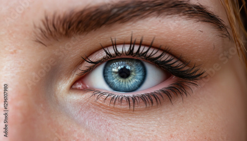 © SakdaK01, Obraz premium detailed macro shot of female eye showcasing vibrant blue iris and eyelashes