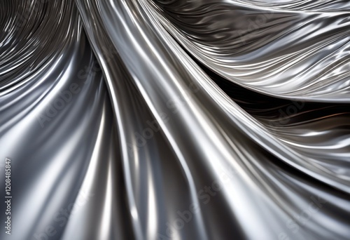 © Yaroslava, Obraz premium detailed macro shot shimmering silver metallic texture highlighting reflective surface intricate patterns, chrome, glossy, shine, grain, luster, sheen, vibrant