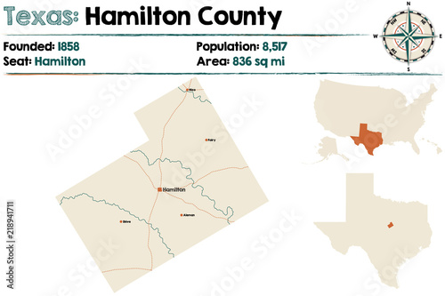 Fototapeta premium Detailed map of Hamilton county in Texas, USA.
