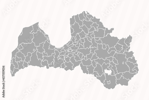 Obraz premium Detailed Map of Latvia With States and Cities