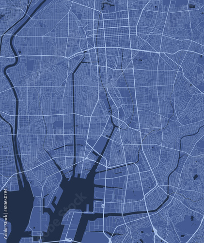 Fototapeta premium Detailed map poster of Nagoya city, linear print map. Blue skyline urban panorama. Decorative graphic tourist map of Nagoya territory.