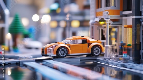 © wahyu, Obraz premium Detailed miniature city scene with orange car
