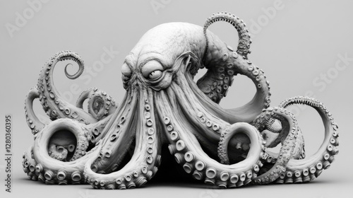 Obraz premium Detailed Monochrome 3D Render of a Powerful Octopus