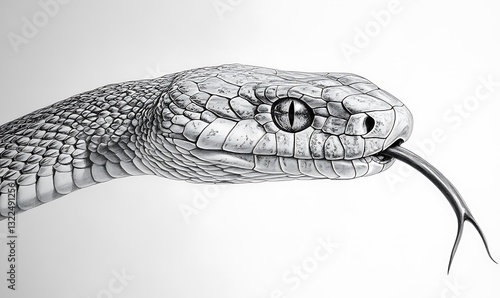 Fototapeta premium Detailed monochrome illustration depicting a snake with its tongue extended