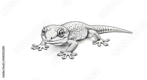 Naklejka premium Detailed monochrome illustration of a cute gecko with big round eyes