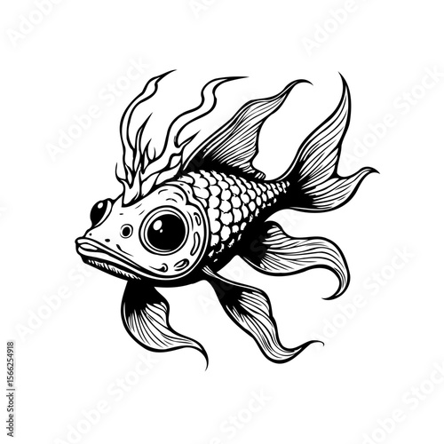 Fototapeta premium Detailed monochrome illustration of a whimsical and ornate goldfish with...
