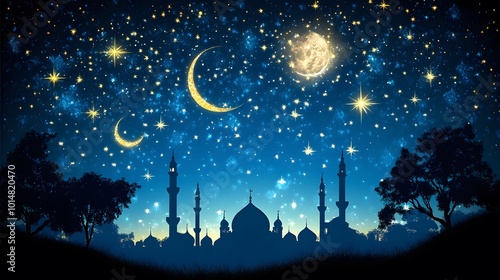 Naklejka premium Detailed mosque illustration in a minimalistic style with clean lines and...