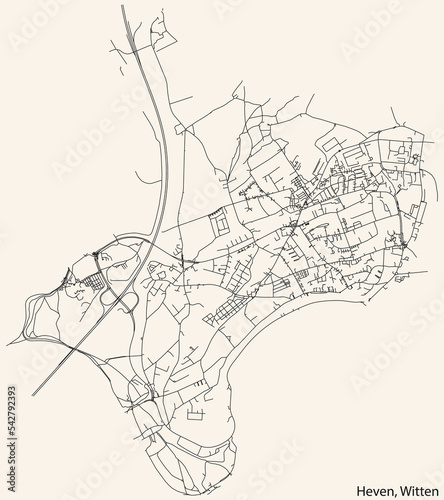© Momcilo, Fototapeta premium Detailed navigation black lines urban street roads map of the HEVEN MUNICIPALITY of the German regional capital city of Witten, Germany on vintage beige background