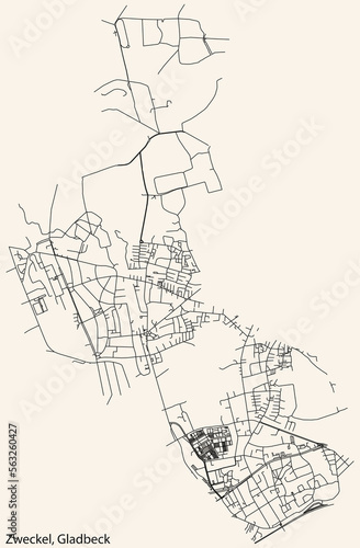 © Momcilo, Fototapeta premium Detailed navigation black lines urban street roads map of the ZWECKEL DISTRICT of the German town of GLADBECK, Germany on vintage beige background