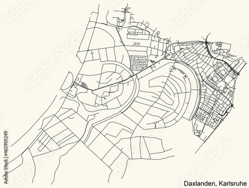 Fototapeta premium Detailed navigation urban street roads map on vintage beige background of the quarter Daxlanden district of the German regional capital city of Karlsruhe, Germany