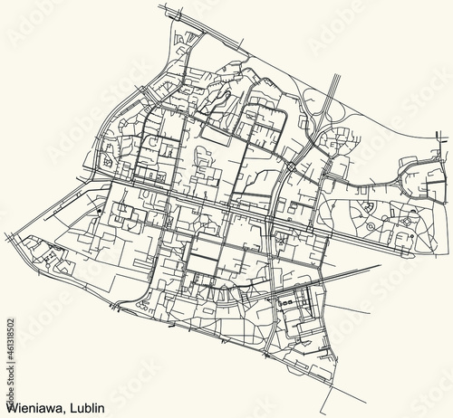 © Momcilo, Fototapeta premium Detailed navigation urban street roads map on vintage beige background of the quarter Wieniawa district of the Polish regional capital city of Lublin, Poland