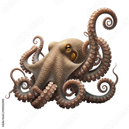 © Rajibchandra, Fototapeta premium Detailed octopus with tentacles curled isolated on transparent background