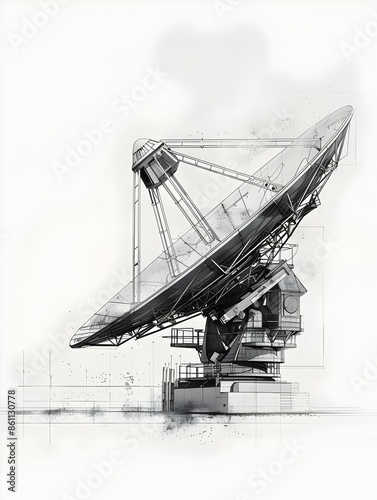 Obraz premium Detailed of a Manufacturer of Structural Satellite Dish Components on a Minimalist White Background