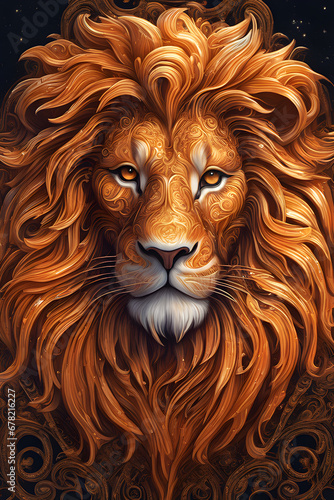 © Pix Yours, Naklejka premium Detailed orange lion digital Painting