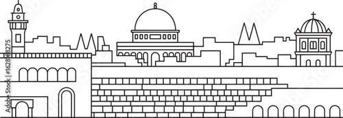 Fototapeta premium Detailed Outline of Jerusalem Skyline with Buildings and Domes on a...