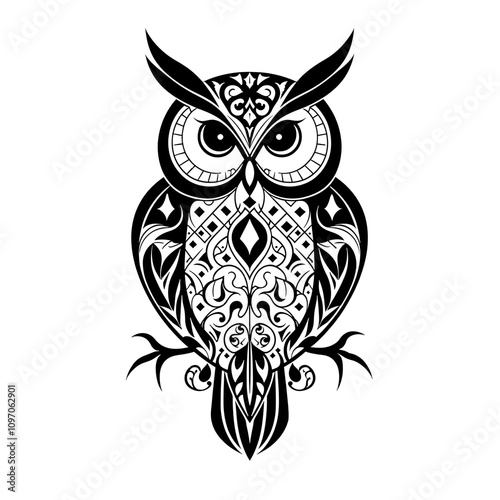 © mahfuzakhatun, Fototapeta premium Detailed Owl with Geometric Patterns Coloring Art
