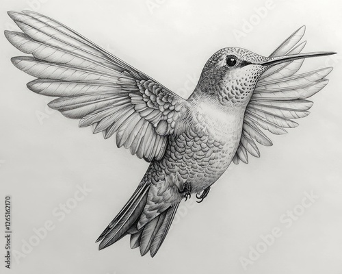 © Supriyati Pixxel, Obraz premium Detailed pencil drawing hummingbird in flight