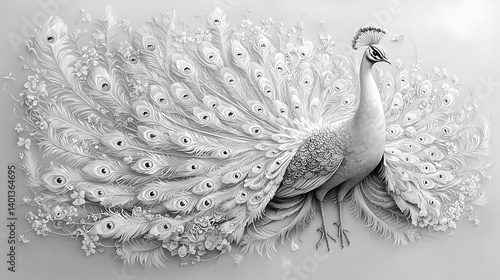 Fototapeta premium Detailed pencil drawing peacock high resolution image
