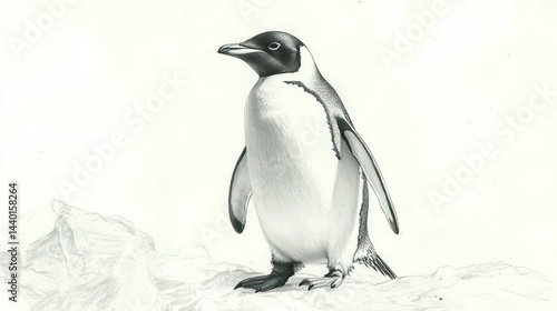 Fototapeta premium Detailed pencil sketch of a penguin