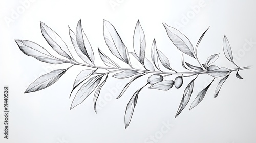 © Handz, Naklejka premium Detailed Pencil Sketch of Olive Branch with Three Olives