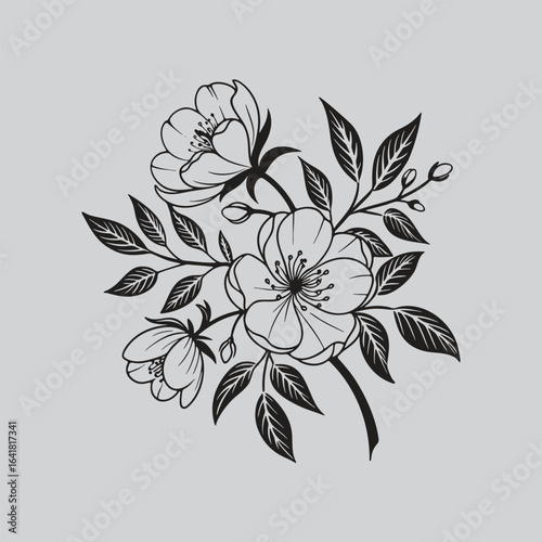 © AB vector designer, Fototapeta premium Detailed Petal Ranunculus Black Silhouette