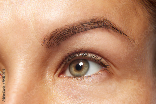 Fototapeta premium Detailed photo of woman's face, preorbital zone with well-kept, smooth and...
