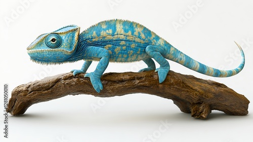 Obraz premium Detailed Photorealistic Chameleon on Branch with White Background