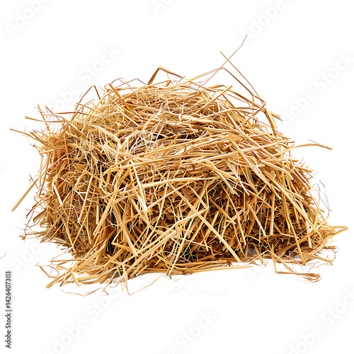 © MahmudulHassan, Obraz premium Detailed Pile of Golden Hay Strands on White, Agriculture, Farm Harvest Still Life