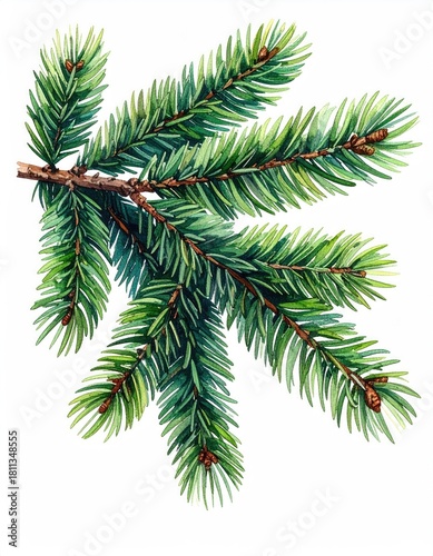 © Deviiva, Fototapeta premium Detailed pine branch illustration, textured, vibrant