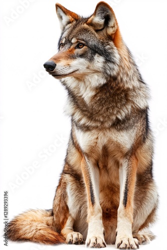 © Rostyslav, Fototapeta premium Detailed Portrait of a Lone Wolf with Ample Fur Against White