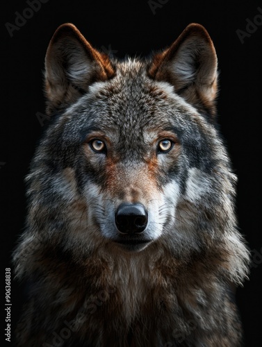 Fototapeta premium Detailed portrait of a wolf with calm blue eyes