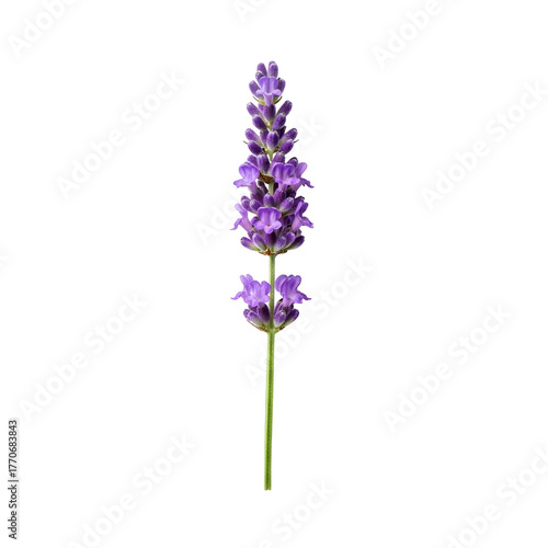 © Sandali Tharindi, Obraz premium Detailed purple lavender flower stalk, isolated vertically on a transparent PNG background