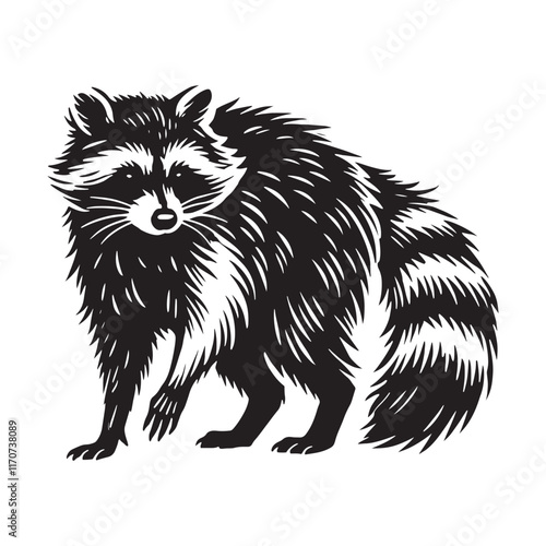 © Vectorhub, Obraz premium Detailed raccoon silhouette for artistic digital projects - Raccoon black vector
